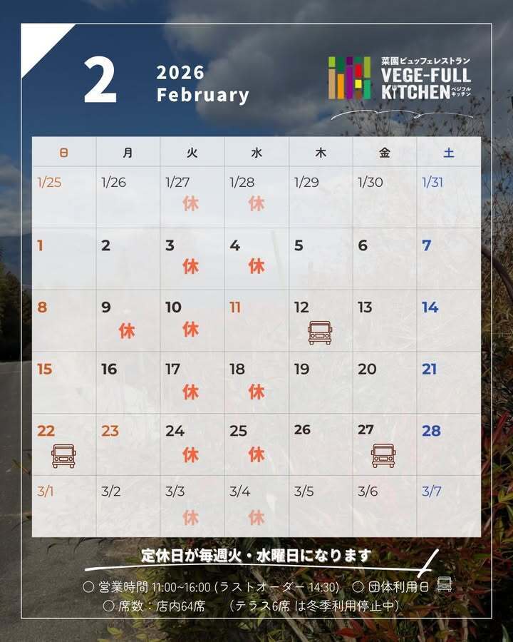 1月に引き続き冬季で野菜の種類や収穫量が減るため、